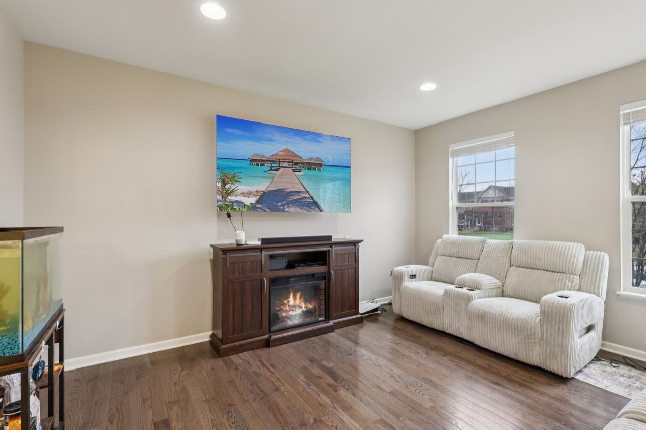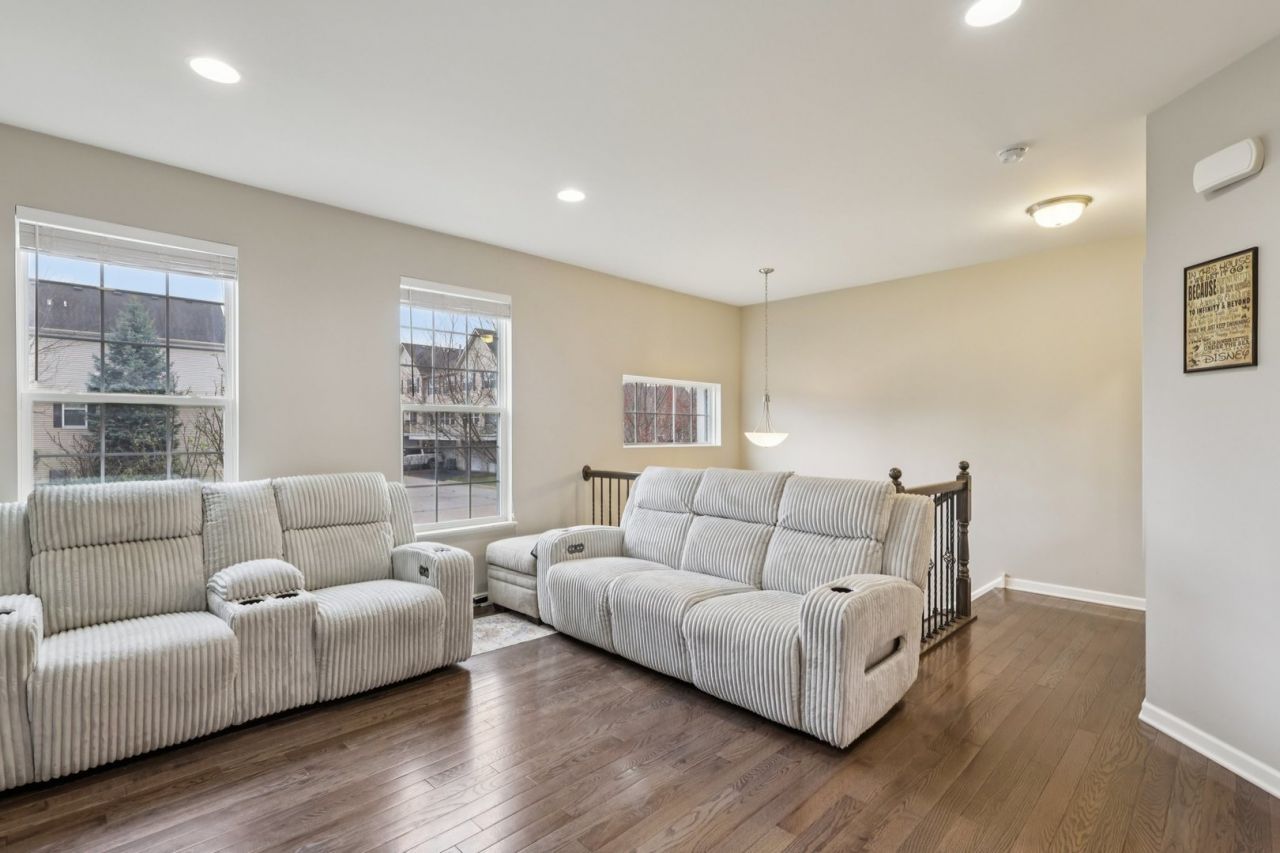 Discover modern elegance in the heart of Gilberts Town Center! This stunning, airy 2-bedroom, 2.5-bath townhome boasts an abundance of natural light throughout. The kitchen is a dream, featuring a large island, sleek stainless steel appliances, a closet pantry, and gleaming hardwood flooring. Transition effortlessly to the second level to find brand-new Luxury Vinyl Plank (LVP) flooring installed in May 2025. The primary suite serves as a true retreat, complete with a sophisticated tray ceiling and a private en-suite bath. Outdoor living is made easy with a large balcony, and the dedicated laundry room adds everyday convenience. Thoughtful improvements set this home apart, including professionally finished bonus storage under both staircases and a versatile finished lower level perfect for a home office or media room. Enjoy the convenience of a 2-car garage and a prime location with easy access to I-90 and top-rated schools. Move-in ready and meticulously maintained. Schedule your tour today!